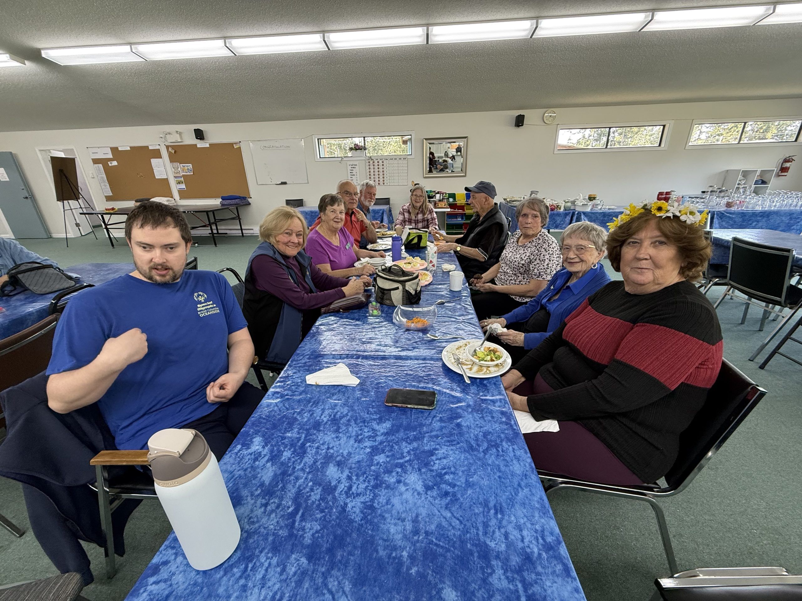As usual the kitchen served up a delicious beef stroganoff with salad and sticky toffee pudding for dessert. There were the usual coffee and goodies available all day for a nominal $5. Thanks to Geri, Katherine and Merle for keeping the members fed and watered.