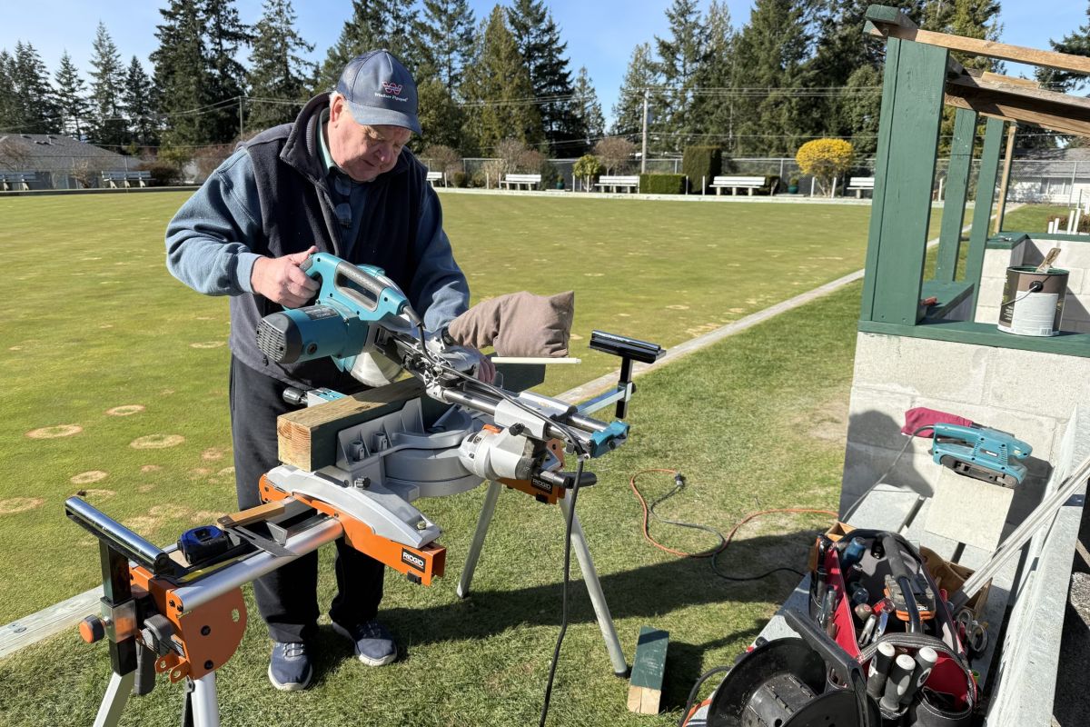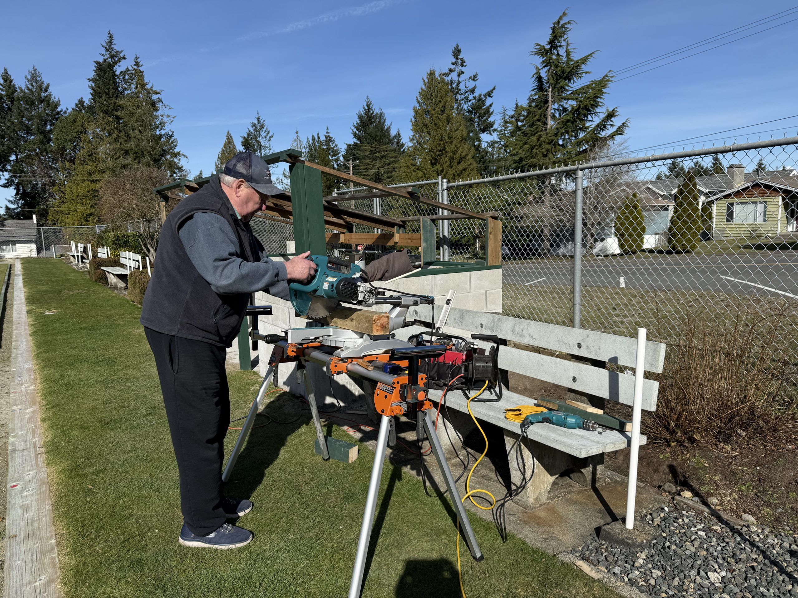 Mick Banks is perservering, working a couple of hours here and there, whenever the conditions allow. Other than the concrete blocks, Mick has done the majority of the work in the design and construction of the box. He’s had some help from a few of the greens crew, Charles MacIntyre, Ross Nakagawa and Garry Campbell.